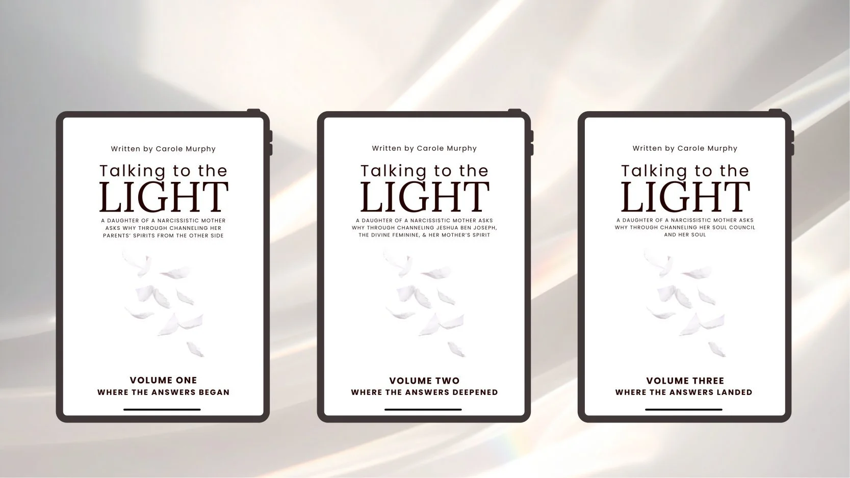 This complete bundle includes a free download:A spiritual booklist for healing and transformation: 3 books that impacted my healing journey. Highly, highly recommended books that had a massive and important impact on my healing journey! Book #2 is a great read after Talking to the Light Volume 2.